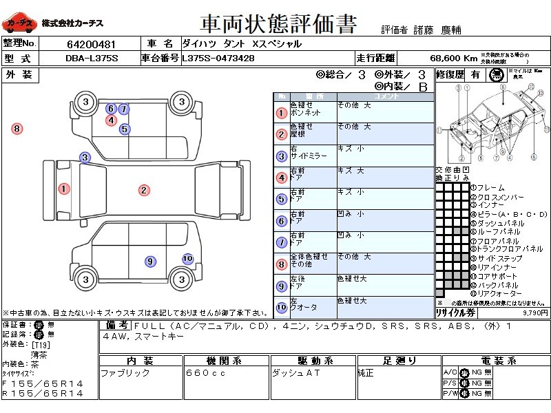 | 外装評価 | 3 |