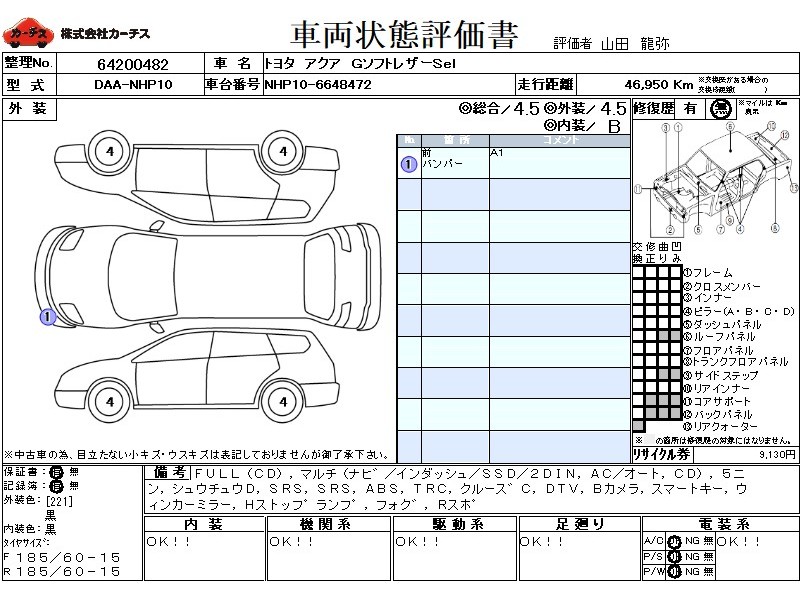 フル装備 / CD / マルチ(ナビ) / エアコン(オート) / 乗車定員(5人) / 集中ドアロック / エアバッグ / 助手席エアバッグ / ABS / トラクションコントロール / クルーズコントロール / 地デジTV / バックカメラ / ETC(社外) / スマートキー / ウインカーミラー / ハイマウントストップランプ / フォグランプ / リアスポイラー /