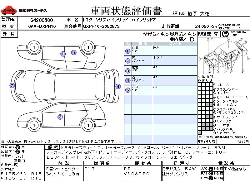エアコン(オート) / パワーステアリング / パワーウィンドウ / エアバッグ / 助手席エアバッグ / サイドエアバッグ / ABS / トラクションコントロール / クルーズコントロール / カーナビゲーション(オンダッシュ) / バックカメラ / ETC / アルミホイール(社外)(15インチ) / スマートキー / ウインカーミラー / フォグランプ / リアスポイラー /