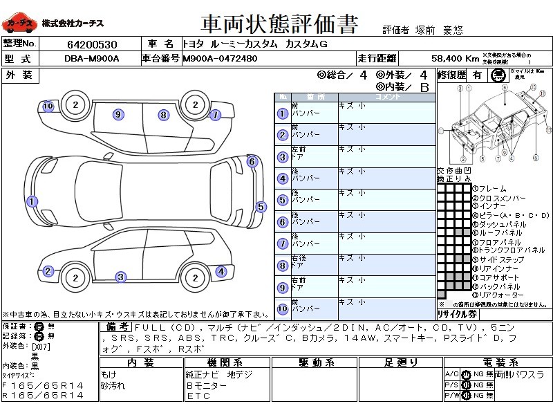 フル装備 / CD / マルチ(ナビ) / エアコン(オート) / テレビ(アナログ) / 乗車定員(5人) / エアバッグ / 助手席エアバッグ / ABS / トラクションコントロール / クルーズコントロール / バックカメラ / ETC(社外) / アルミホイール(14インチ) / スマートキー / パワースライドドア / フォグランプ / フロントスポイラー / リアスポイラー /