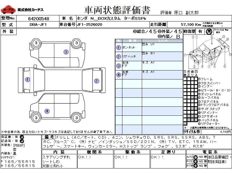 フル装備 / CD / 乗車定員(4人) / 集中ドアロック / エアバッグ / 助手席エアバッグ / サイドエアバッグ / ABS / トラクションコントロール / クルーズコントロール / カーナビゲーション(社外)(インダッシュ,SSD,2DIN) / テレビ(社外) / 地デジTV(社外) / ETC / アルミホイール(15インチ) / ハーフレザーシート / スマートキー / ウインカーミラー / ハイマウントストップランプ / フォグランプ / サイドスポイラー / リアスポイラー /