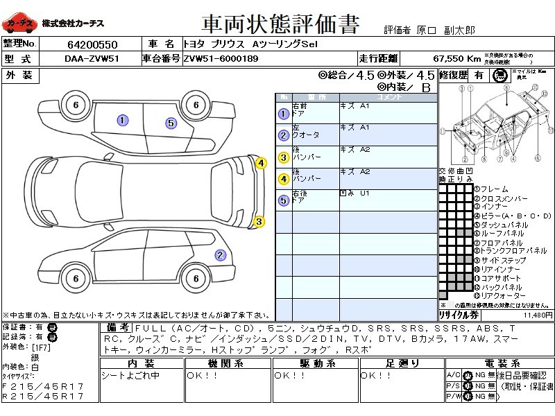 フル装備 / CD / 乗車定員(5人) / 集中ドアロック / エアバッグ / 助手席エアバッグ / サイドエアバッグ / ABS / トラクションコントロール / クルーズコントロール / カーナビゲーション(インダッシュ,SSD,2DIN) / テレビ(アナログ) / 地デジTV / バックカメラ / ETC(社外) / アルミホイール(17インチ) / スマートキー / ウインカーミラー / ハイマウントストップランプ / フォグランプ / リアスポイラー /