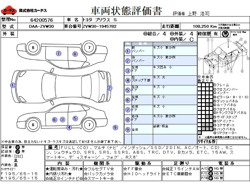 フル装備 / CD / マルチ(ナビ) / エアコン(オート) / 乗車定員(5人) / 集中ドアロック / エアバッグ / 助手席エアバッグ / サイドエアバッグ / ABS / トラクションコントロール / 地デジTV / バックカメラ / ETC / アルミホイール(15インチ) / スマートキー / ディスチャージ / フォグランプ / リアスポイラー /