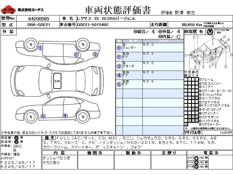 平成19年登録レクサスIS入庫しました。