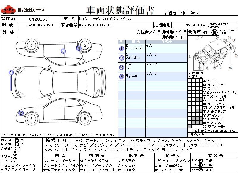 フル装備 / CD / 乗車定員(5人) / 集中ドアロック / エアバッグ / 助手席エアバッグ / サイドエアバッグ / ABS / トラクションコントロール / クルーズコントロール / カーナビゲーション(オンダッシュ,SSD) / テレビ(アナログ) / 地デジTV / バックカメラ(サイドカメラ) / ETC / アルミホイール(18インチ) / ハーフレザーシート / スマートキー / ウインカーミラー / ハイマウントストップランプ / フォグランプ /