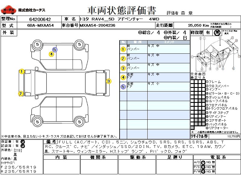 | 外装評価 | 4 |