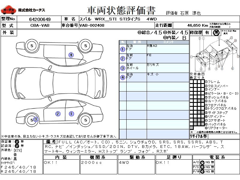 フル装備 / CD / 乗車定員(5人) / 集中ドアロック / エアバッグ / 助手席エアバッグ / サイドエアバッグ / ABS / トラクションコントロール / カーナビゲーション(インダッシュ,SSD,2DIN) / 地デジTV / バックカメラ / ETC / アルミホイール(18インチ) / ハーフレザーシート / スマートキー / ウインカーミラー / ハイマウントストップランプ / フォグランプ / リアスポイラー /