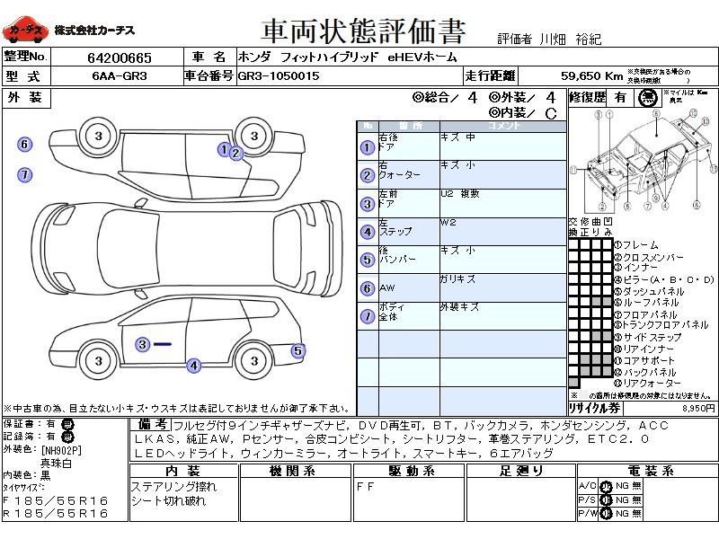フル装備 / CD / 乗車定員(5人) / エアバッグ / 助手席エアバッグ / サイドエアバッグ / ABS / クルーズコントロール / カーナビゲーション(SSD) / テレビ(アナログ) / 地デジTV / バックカメラ / ETC / アルミホイール(16インチ) / スマートキー / ウインカーミラー / ハイマウントストップランプ /