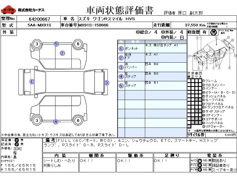 フル装備 / CD(社外) / 乗車定員(4人) / 集中ドアロック / ETC / スマートキー / ハイマウントストップランプ / パワースライドドア /