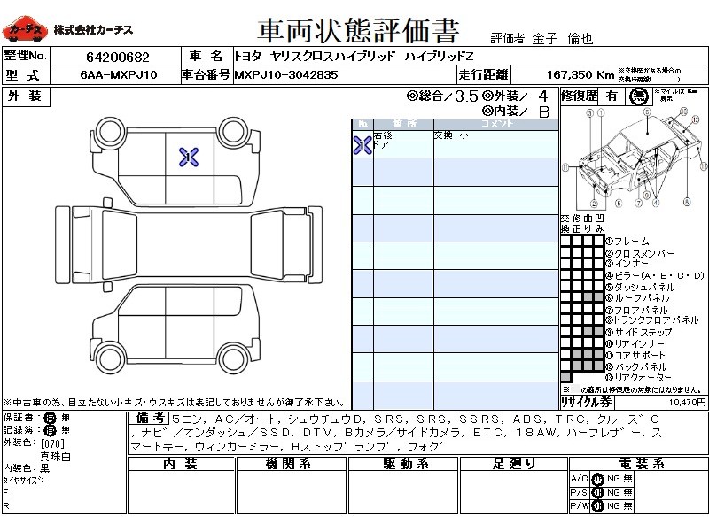 乗車定員(5人) / エアコン(オート) / パワーステアリング / パワーウィンドウ / 集中ドアロック / エアバッグ / 助手席エアバッグ / サイドエアバッグ / ABS / トラクションコントロール / クルーズコントロール / カーナビゲーション(オンダッシュ,SSD) / 地デジTV / バックカメラ(サイドカメラ) / ETC / アルミホイール(18インチ) / ハーフレザーシート / スマートキー / ウインカーミラー / ハイマウントストップランプ / フォグランプ /