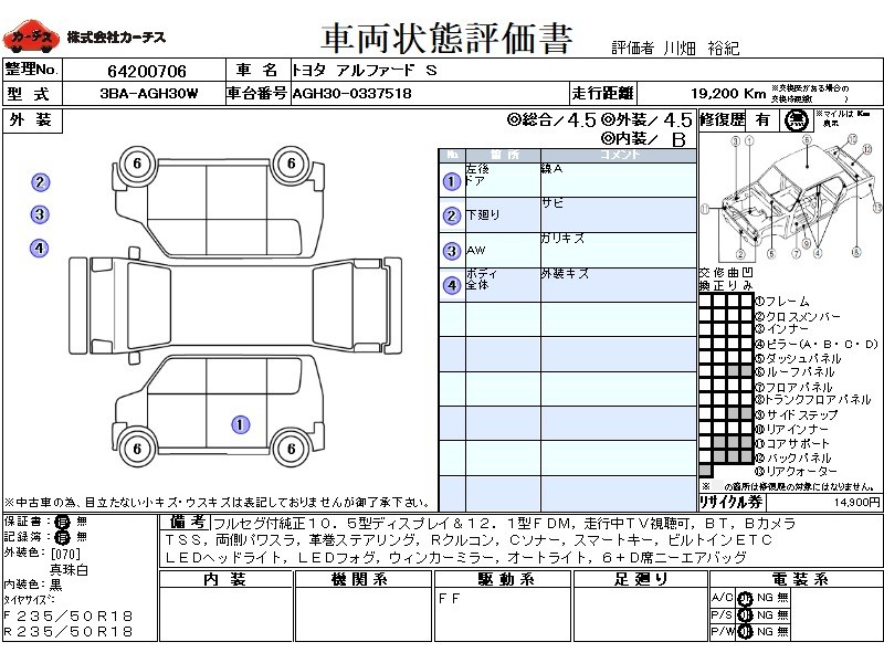 フル装備 / CD / 乗車定員(7人) / エアバッグ / 助手席エアバッグ / サイドエアバッグ / ABS / クルーズコントロール / カーナビゲーション(SSD) / テレビ(アナログ) / 地デジTV / フリップダウンモニタ / バックカメラ / ETC / アルミホイール(18インチ) / スマートキー / ウインカーミラー / ハイマウントストップランプ / パワースライドドア / フォグランプ / リアスポイラー /