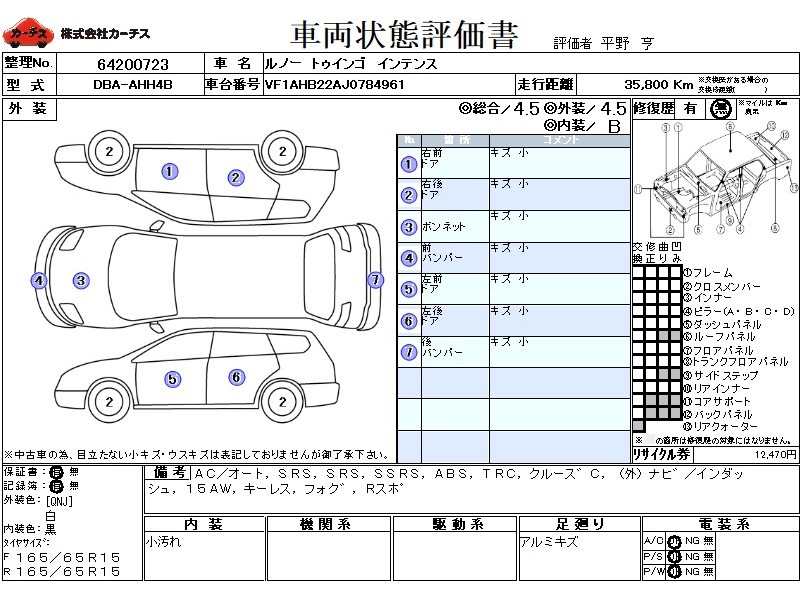 AC/オート,PS,PW,SRS,PSSRS,SSRS,ABS,TRC,クルース゛C,(外)ナヒ゛/インダッシュ,(外)ETC,15AW,キーレス,フォク゛,Rスホ゜