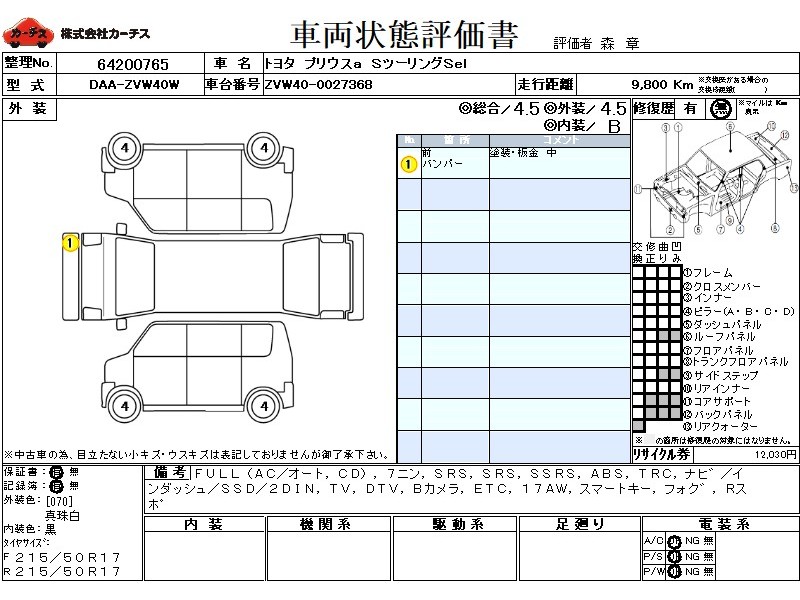 | 外装評価 | 4.5 |