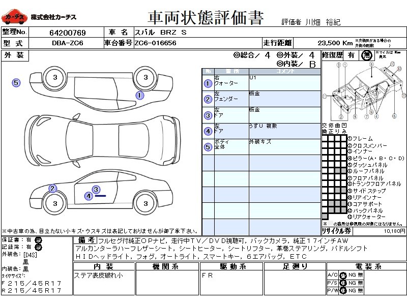 フル装備 / CD / 乗車定員(4人) / エアバッグ / 助手席エアバッグ / サイドエアバッグ / ABS / カーナビゲーション(SSD) / テレビ(アナログ) / 地デジTV / バックカメラ / ETC / アルミホイール(17インチ) / ハーフレザーシート / スマートキー / ディスチャージ / ハイマウントストップランプ / フォグランプ /