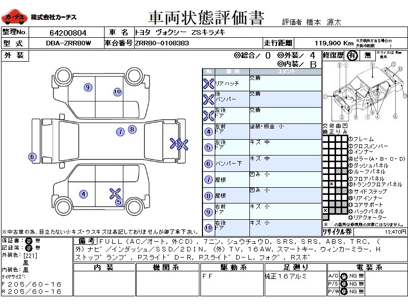 フル装備 / CD(社外) / 乗車定員(7人) / 集中ドアロック / エアバッグ / 助手席エアバッグ / ABS / トラクションコントロール / カーナビゲーション(社外)(インダッシュ,SSD,2DIN) / テレビ(社外) / アルミホイール(16インチ) / スマートキー / ウインカーミラー / ハイマウントストップランプ / パワースライドドア / フォグランプ / リアスポイラー /