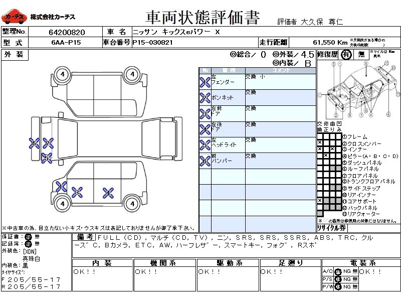 フル装備 / CD / マルチ(ナビ) / エアコン / テレビ(アナログ) / 乗車定員 / エアバッグ / 助手席エアバッグ / サイドエアバッグ / ABS / トラクションコントロール / クルーズコントロール / バックカメラ / ETC / アルミホイール / ハーフレザーシート / スマートキー / フォグランプ / リアスポイラー /