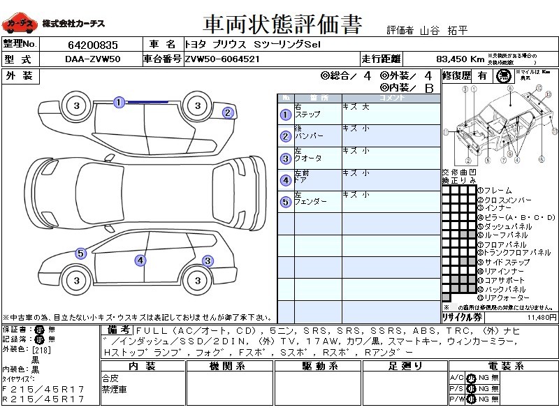 | 外装評価 | 4 |