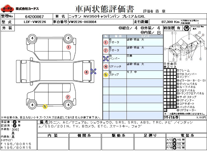 乗車定員(5人) / エアコン(マニュアル) / パワーステアリング / パワーウィンドウ / 集中ドアロック / エアバッグ / 助手席エアバッグ / ABS / トラクションコントロール / カーナビゲーション(インダッシュ,SSD,2DIN) / テレビ(アナログ) / バックカメラ / ETC / スマートキー / フォグランプ /