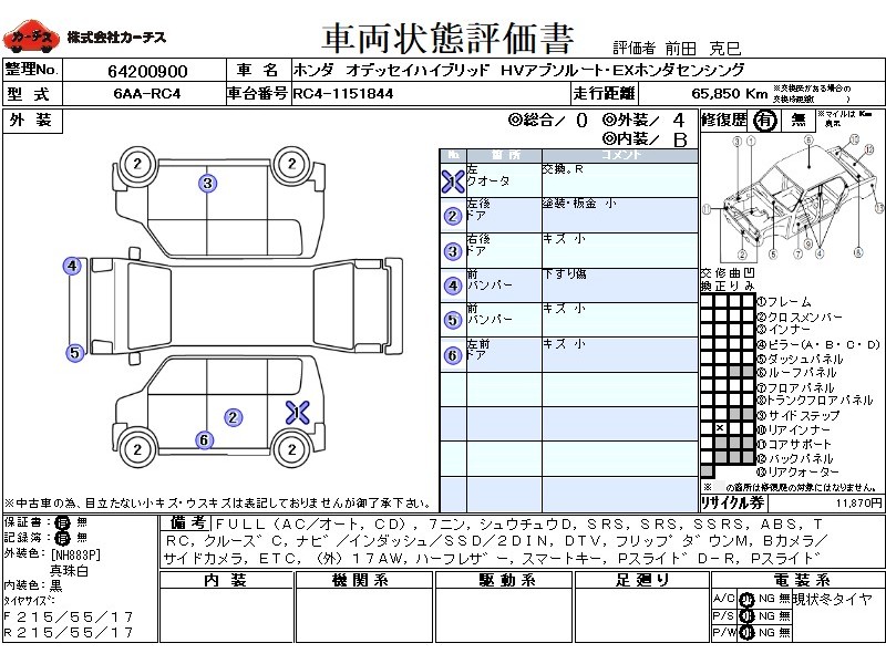 フル装備 / CD / 乗車定員(7人) / 集中ドアロック / エアバッグ / 助手席エアバッグ / サイドエアバッグ / ABS / トラクションコントロール / クルーズコントロール / カーナビゲーション(インダッシュ,SSD,2DIN) / 地デジTV / フリップダウンモニタ / バックカメラ(サイドカメラ) / ETC / アルミホイール(社外)(17インチ) / ハーフレザーシート / スマートキー / パワースライドドア / フォグランプ / リアスポイラー /
