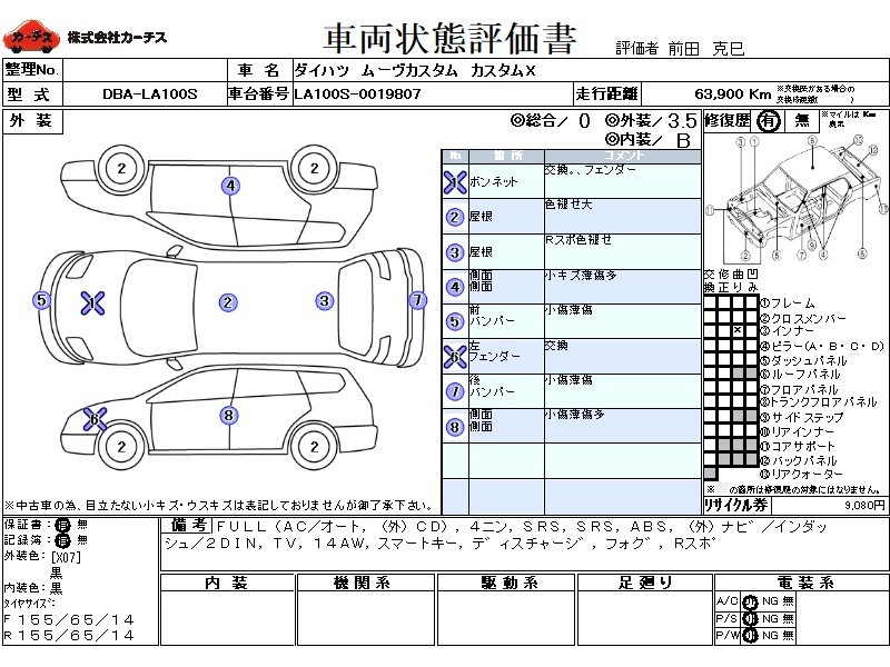フル装備 / CD(社外) / 乗車定員(4人) / エアバッグ / 助手席エアバッグ / ABS / カーナビゲーション(社外)(インダッシュ,2DIN) / テレビ(アナログ) / ETC(社外) / アルミホイール(14インチ) / スマートキー / ディスチャージ / フォグランプ / リアスポイラー /