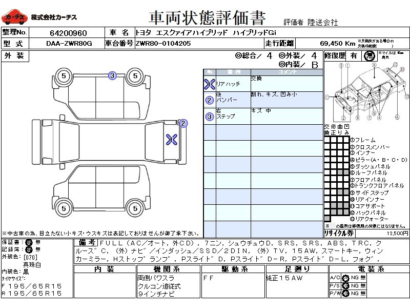 フル装備 / CD(社外) / 乗車定員(7人) / 集中ドアロック / エアバッグ / 助手席エアバッグ / ABS / トラクションコントロール / クルーズコントロール / カーナビゲーション(社外)(インダッシュ,SSD,2DIN) / テレビ(社外) / 地デジTV(社外) / ETC(社外) / アルミホイール(15インチ) / スマートキー / ウインカーミラー / ハイマウントストップランプ / パワースライドドア / フォグランプ / フロントスポイラー / リアスポイラー / リアアンダースポイラー /