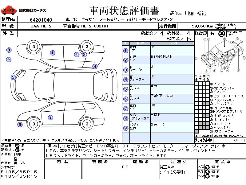 フル装備 / CD / 乗車定員(5人) / エアバッグ / 助手席エアバッグ / ABS / クルーズコントロール / カーナビゲーション(SSD) / テレビ(アナログ) / 地デジTV / バックカメラ(フロント) / ETC / アルミホイール(15インチ) / スマートキー / ウインカーミラー / ハイマウントストップランプ / フォグランプ /