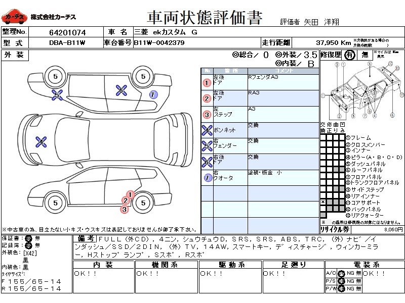 フル装備 / CD(社外) / 乗車定員(4人) / 集中ドアロック / エアバッグ / 助手席エアバッグ / ABS / トラクションコントロール / カーナビゲーション(社外)(インダッシュ,SSD,2DIN) / テレビ(社外) / 地デジTV(社外) / アルミホイール(14インチ) / スマートキー / ディスチャージ / ウインカーミラー / ハイマウントストップランプ / サイドスポイラー / リアスポイラー /