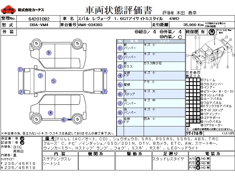 フル装備 / CD / 集中ドアロック / エアバッグ / 助手席エアバッグ / サイドエアバッグ / ABS / トラクションコントロール / クルーズコントロール / カーナビゲーション(インダッシュ,SSD,2DIN) / 地デジTV / バックカメラ / ETC / アルミホイール(18インチ) / スマートキー / ウインカーミラー / ハイマウントストップランプ / フォグランプ / サイドスポイラー / リアスポイラー /