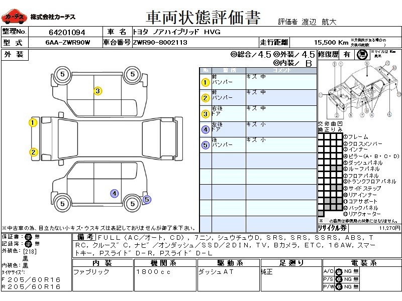 フル装備 / CD / 乗車定員(7人) / 集中ドアロック / エアバッグ / 助手席エアバッグ / サイドエアバッグ / ABS / トラクションコントロール / クルーズコントロール / カーナビゲーション(オンダッシュ,SSD,2DIN) / テレビ(アナログ) / バックカメラ / ETC / アルミホイール(16インチ) / スマートキー / パワースライドドア /