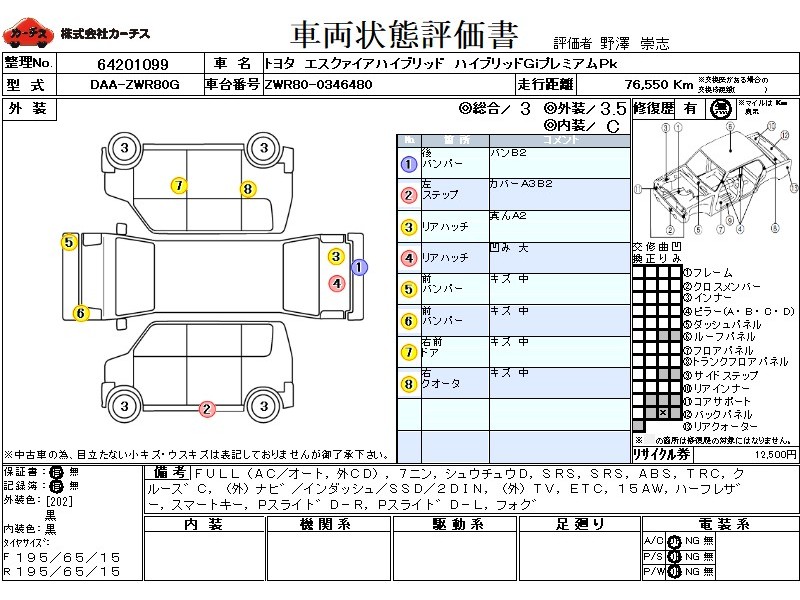 フル装備 / CD(社外) / 乗車定員(7人) / 集中ドアロック / エアバッグ / 助手席エアバッグ / ABS / トラクションコントロール / クルーズコントロール / カーナビゲーション(社外)(インダッシュ,SSD,2DIN) / テレビ(社外) / ETC / アルミホイール(15インチ) / ハーフレザーシート / スマートキー / パワースライドドア / フォグランプ /