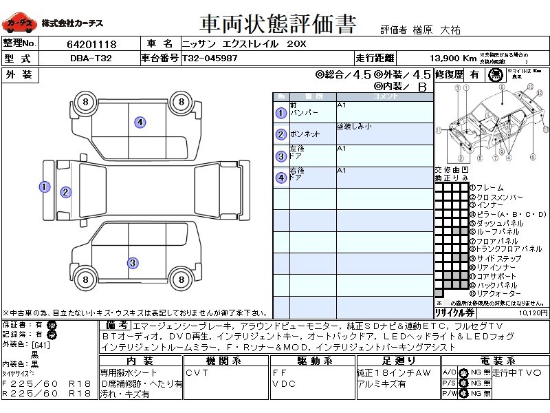 フル装備 / CD / エアバッグ / 助手席エアバッグ / ABS / トラクションコントロール / クルーズコントロール / カーナビゲーション(インダッシュ,2DIN) / 地デジTV / バックカメラ(フロント) / ETC / アルミホイール(18インチ) / スマートキー / ウインカーミラー / パワーバックドア / フォグランプ / ルーフレール / リアスポイラー /