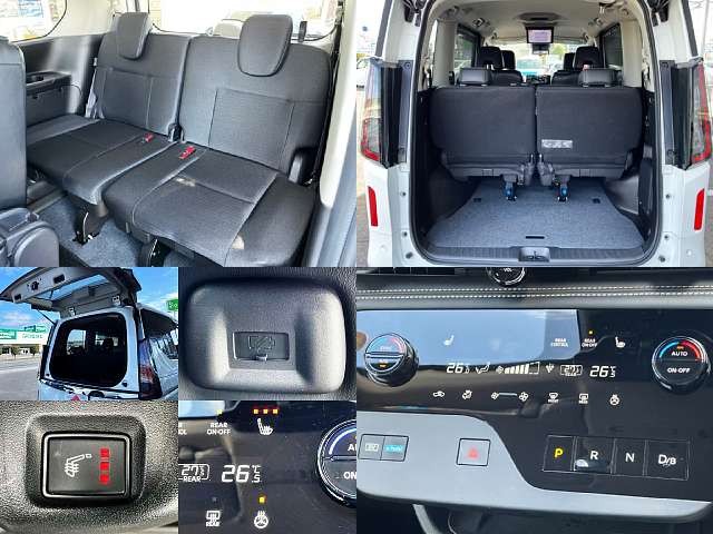 乗車定員(8人) / エアコン(オート) / パワーステアリング / パワーウィンドウ / エアバッグ / 助手席エアバッグ / サイドエアバッグ / ABS / トラクションコントロール / クルーズコントロール / カーナビゲーション(SSD) / テレビ(アナログ) / 地デジTV / フリップダウンモニタ / バックカメラ(フロント) / ETC / アルミホイール(16インチ) / スマートキー / パワースライドドア / サイドスポイラー / リアスポイラー /