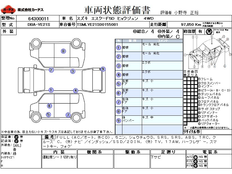 フル装備 / CD(社外) / 乗車定員(5人) / 集中ドアロック / エアバッグ / 助手席エアバッグ / ABS / トラクションコントロール / クルーズコントロール / カーナビゲーション(社外)(インダッシュ,SSD,2DIN) / テレビ(社外) / ETC(社外) / アルミホイール(17インチ) / ハーフレザーシート / スマートキー / フォグランプ /