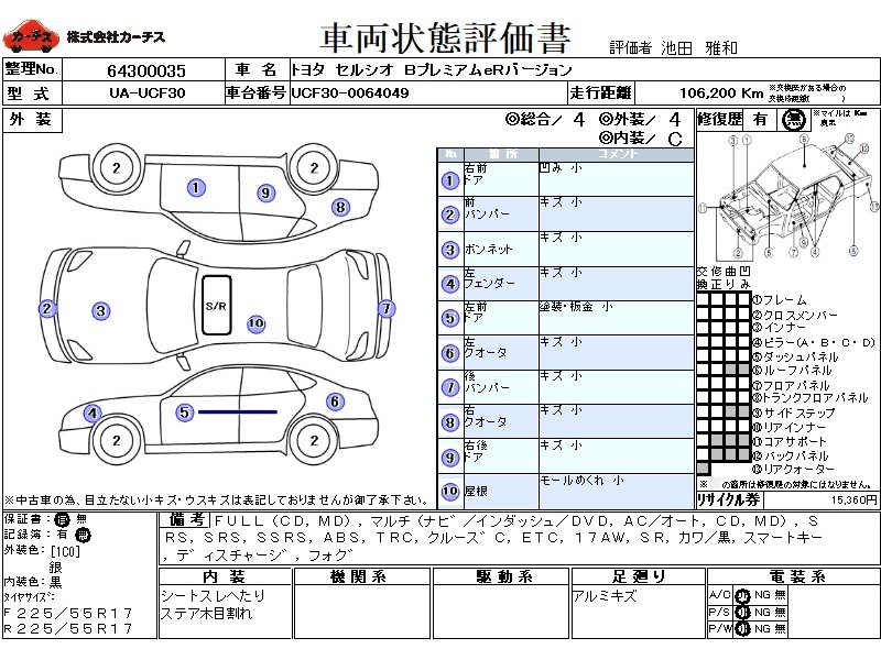 FULL(CD,MD),マルチ(ナヒ゛/インダッシュ/DVD,AC/オート,CD,MD),SRS,PSSRS,SSRS,ABS,TRC,クルース゛C,(外)DTV,(外)Bカメラ,ETC,17AW,SR,カワ/黒,スマートキー,テ゛ィスチ
