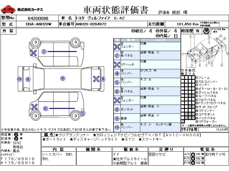 フル装備 / CD(社外) / 乗車定員(7人) / 集中ドアロック / エアバッグ / 助手席エアバッグ / サイドエアバッグ / ABS / トラクションコントロール / カーナビゲーション(社外)(ポップアップ,HDD,2DIN) / 地デジTV(社外) / ETC / アルミホイール(社外)(18インチ) / スマートキー / ウインカーミラー / ハイマウントストップランプ / パワースライドドア / フォグランプ / サイドスポイラー / リアスポイラー /