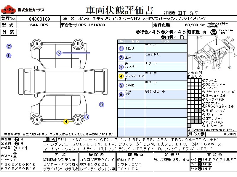 フル装備 / CD / 乗車定員(7人) / エアバッグ / 助手席エアバッグ / ABS / トラクションコントロール / クルーズコントロール / カーナビゲーション(インダッシュ,SSD,2DIN) / 地デジTV / フリップダウンモニタ / バックカメラ / ETC / アルミホイール(社外)(16インチ) / スマートキー / ウインカーミラー / ハイマウントストップランプ / パワースライドドア / フォグランプ / サイドスポイラー / リアスポイラー /
