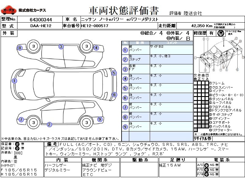 フル装備 / CD / 乗車定員(5人) / 集中ドアロック / エアバッグ / 助手席エアバッグ / ABS / トラクションコントロール / カーナビゲーション(インダッシュ,SSD,2DIN) / 地デジTV / バックカメラ(サイドカメラ) / ETC(社外) / アルミホイール(15インチ) / ハーフレザーシート / スマートキー / ウインカーミラー / ハイマウントストップランプ / フォグランプ / リアスポイラー /