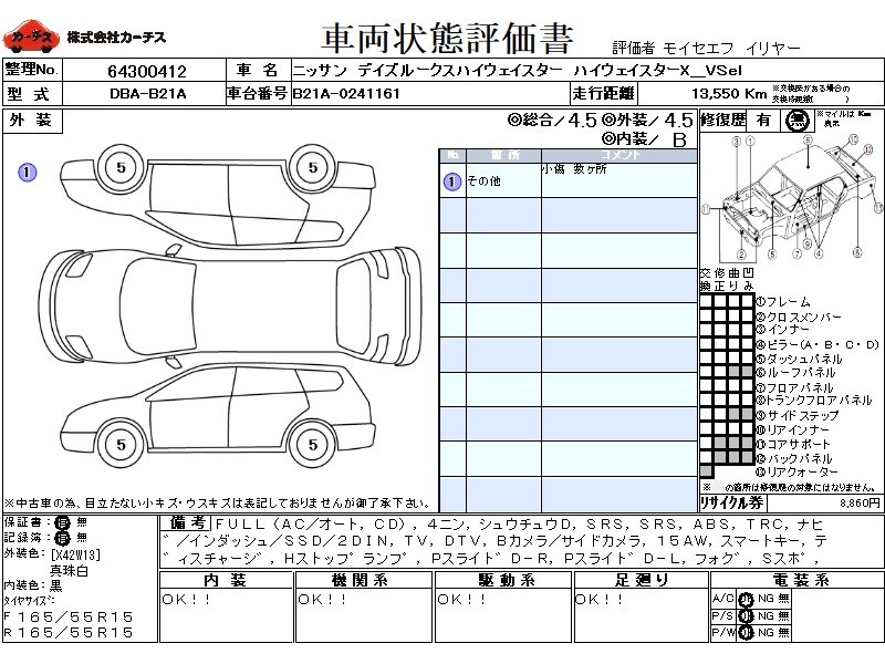 | 法定点検整備 | あり 契約後、納車までに実施 |