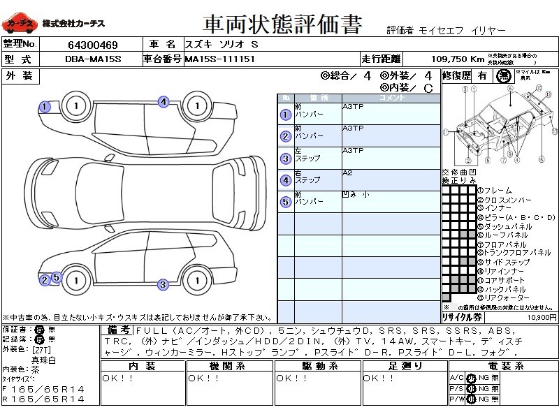 フル装備 / CD(社外) / 乗車定員(5人) / 集中ドアロック / エアバッグ / 助手席エアバッグ / サイドエアバッグ / ABS / トラクションコントロール / カーナビゲーション(社外)(インダッシュ,HDD,2DIN) / テレビ(社外) / ETC(社外) / アルミホイール(14インチ) / スマートキー / ディスチャージ / ウインカーミラー / ハイマウントストップランプ / パワースライドドア / フォグランプ / フロントスポイラー / サイドスポイラー / リアスポイラー / リアアンダースポイラー /