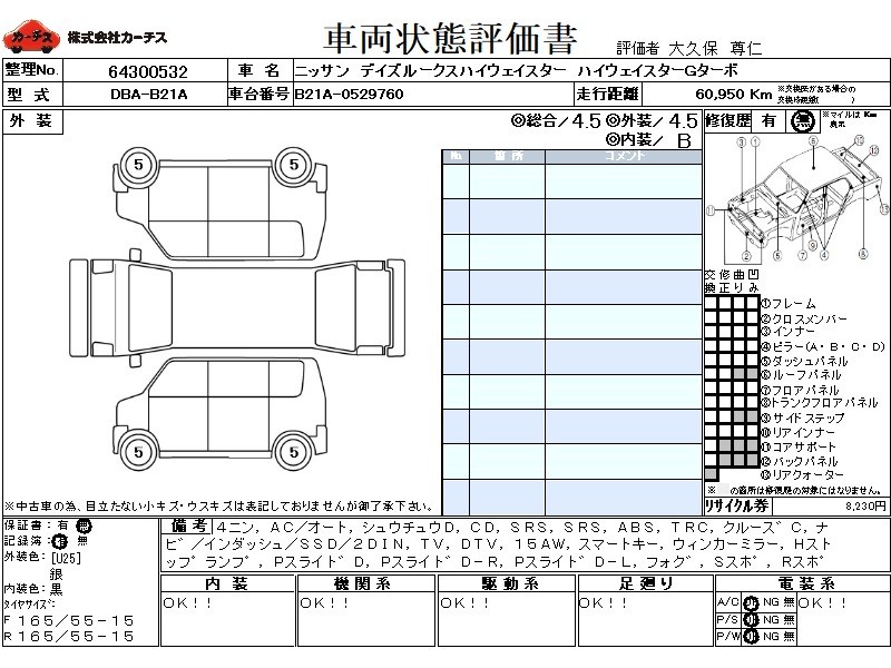 乗車定員(4人) / エアコン(オート) / パワーステアリング / パワーウィンドウ / 集中ドアロック / CD / エアバッグ / 助手席エアバッグ / ABS / トラクションコントロール / クルーズコントロール / カーナビゲーション(インダッシュ,SSD,2DIN) / テレビ(アナログ) / 地デジTV / アルミホイール(15インチ) / スマートキー / ウインカーミラー / ハイマウントストップランプ / パワースライドドア / フォグランプ / サイドスポイラー / リアスポイラー /