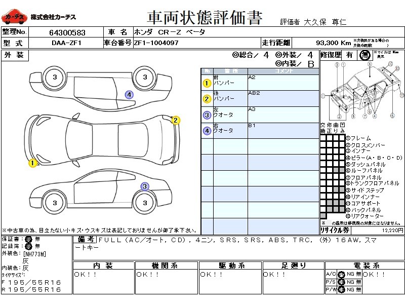 フル装備 / CD / 乗車定員(4人) / エアバッグ / 助手席エアバッグ / ABS / トラクションコントロール / ETC(社外) / アルミホイール(社外)(16インチ) / スマートキー /