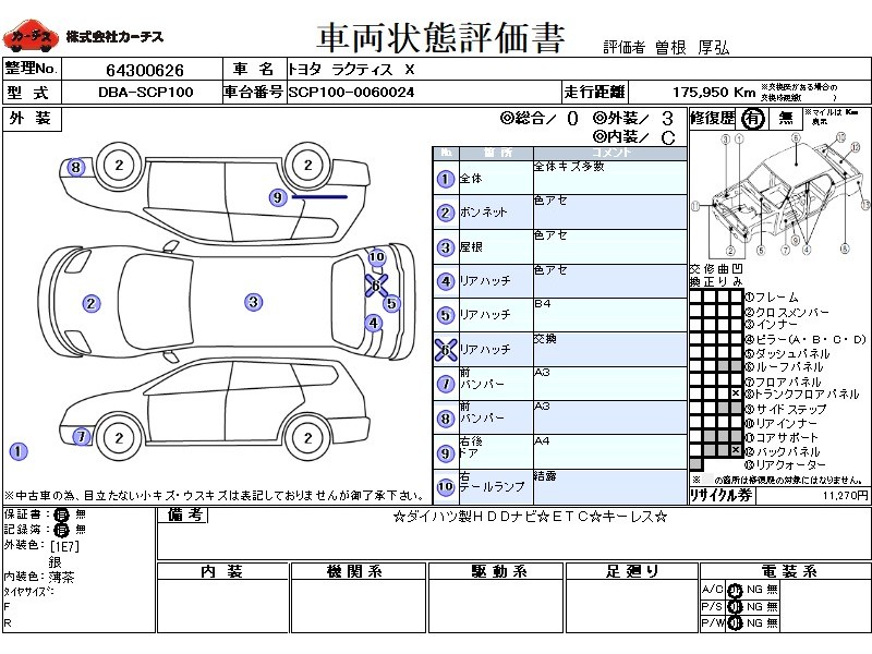 | 法定点検整備 | あり 契約後、納車までに実施 |