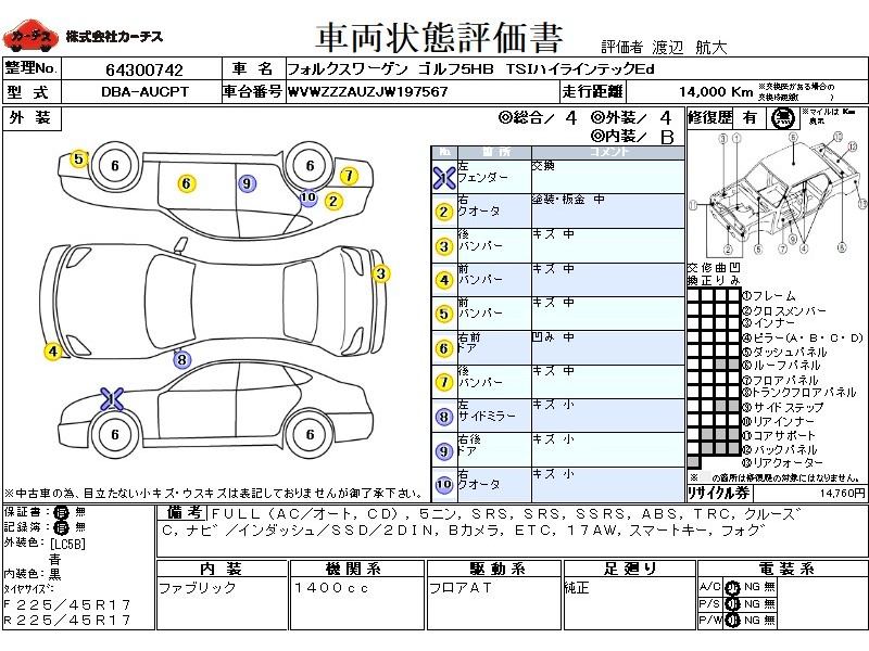 フル装備 / CD / 乗車定員(5人) / エアバッグ / 助手席エアバッグ / サイドエアバッグ / ABS / トラクションコントロール / クルーズコントロール / カーナビゲーション(インダッシュ,SSD,2DIN) / バックカメラ / ETC / アルミホイール(17インチ) / スマートキー / フォグランプ /
