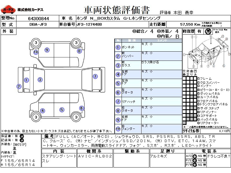 フル装備 / CD(社外) / 集中ドアロック / エアバッグ / 助手席エアバッグ / サイドエアバッグ / ABS / トラクションコントロール / クルーズコントロール / カーナビゲーション(社外)(インダッシュ,SSD,2DIN) / 地デジTV(社外) / ETC / アルミホイール(14インチ) / スマートキー / ウインカーミラー / ハイマウントストップランプ / パワースライドドア / フォグランプ / サイドスポイラー / リアスポイラー /
