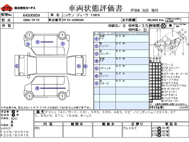 FULL(AC/オート,CD),SRS,PSSRS,ABS,ナヒ゛/インダッシュ/2DIN,DTV,Bカメラ,ETC,16AW,キーレス