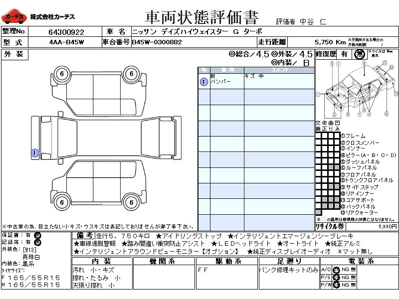 走行5.750キロ!アイドリングストップ!インテリジェントエマージェンシーブレーキ!車線逸脱警報!インテリジェントアラウンドビューモニター!LEDヘッドライト!オートライト!純正アルミ&エアロ!インテリジェントキー!