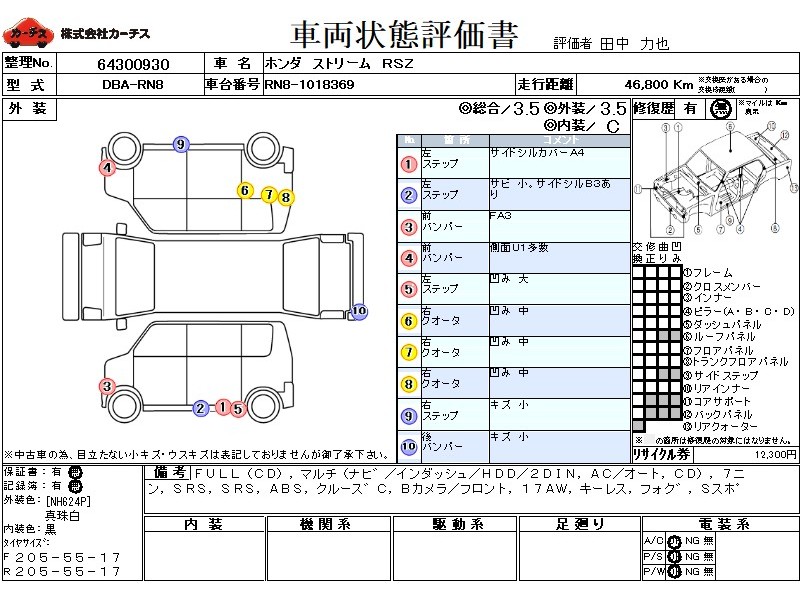 FULL(CD),マルチ(ナヒ゛/インダッシュ/HDD/2DIN,AC/オート,CD),7ニン,SRS,PSSRS,ABS,クルース゛C,Bカメラ/フロント,(外)ETC,17AW,キーレス,フォク゛,Sスホ゜