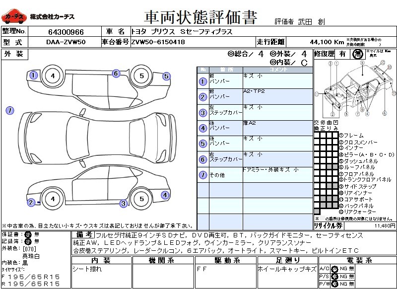 フル装備 / CD / 乗車定員(5人) / エアバッグ / 助手席エアバッグ / サイドエアバッグ / ABS / トラクションコントロール / クルーズコントロール / カーナビゲーション(SSD) / テレビ(アナログ) / 地デジTV / バックカメラ / ETC / アルミホイール(15インチ) / スマートキー / ウインカーミラー / ハイマウントストップランプ / フォグランプ / リアスポイラー /