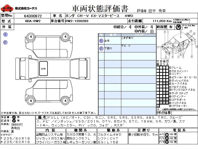 フル装備 / CD / 乗車定員(5人) / エアバッグ / 助手席エアバッグ / サイドエアバッグ / ABS / トラクションコントロール / クルーズコントロール / カーナビゲーション(インダッシュ,SSD,2DIN) / 地デジTV / バックカメラ / ETC / アルミホイール(18インチ) / サンルーフ / 革シート(黒) / スマートキー / ウインカーミラー / パワーバックドア / フォグランプ / リアスポイラー /