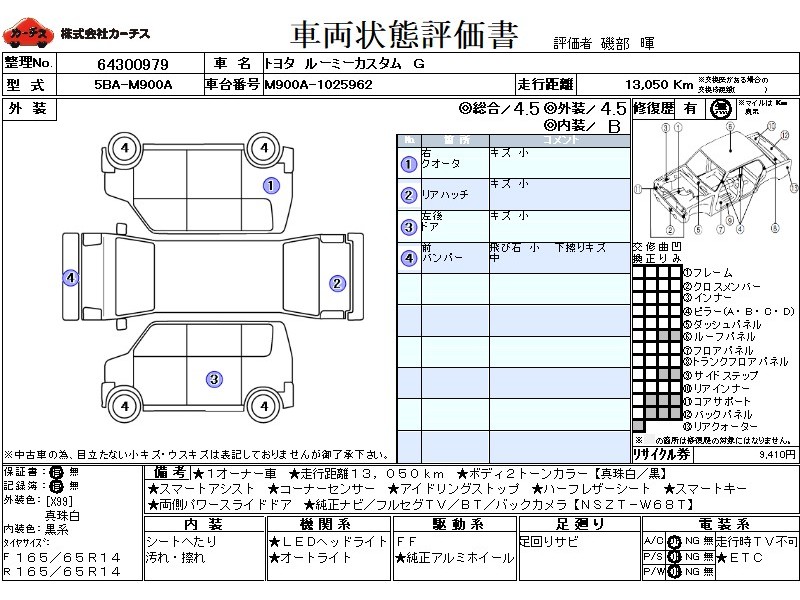1オーナー車!走行距離13,050KM!ボディ2トーンカラー【真珠白/黒】!スマートアシスト!コーナーセンサー!アイドリングストップ!オートライト!スマートキー!両側パワースライドドア!純正ナビ/フルセグTV/BT/バックカメラ!ETC!